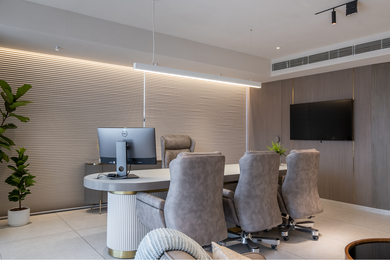 The brief was to design an office that reflected authority, professionalism, and timeless luxury without compromising on comfort or efficiency. The client sought a workspace that felt premium yet calm, visually impressive yet practical—one that elevated the everyday work experience while remaining functional for long working hours and formal interactions.